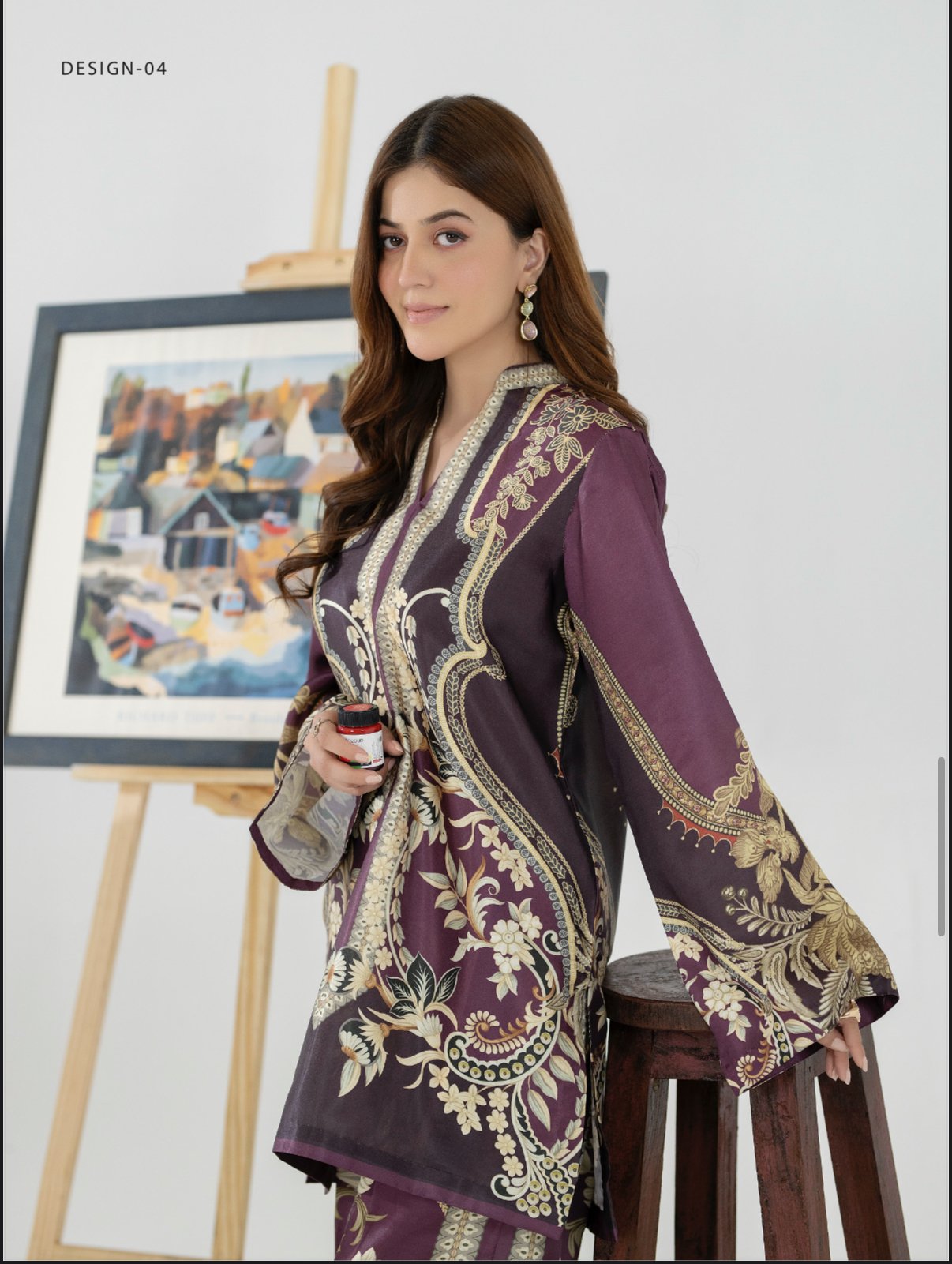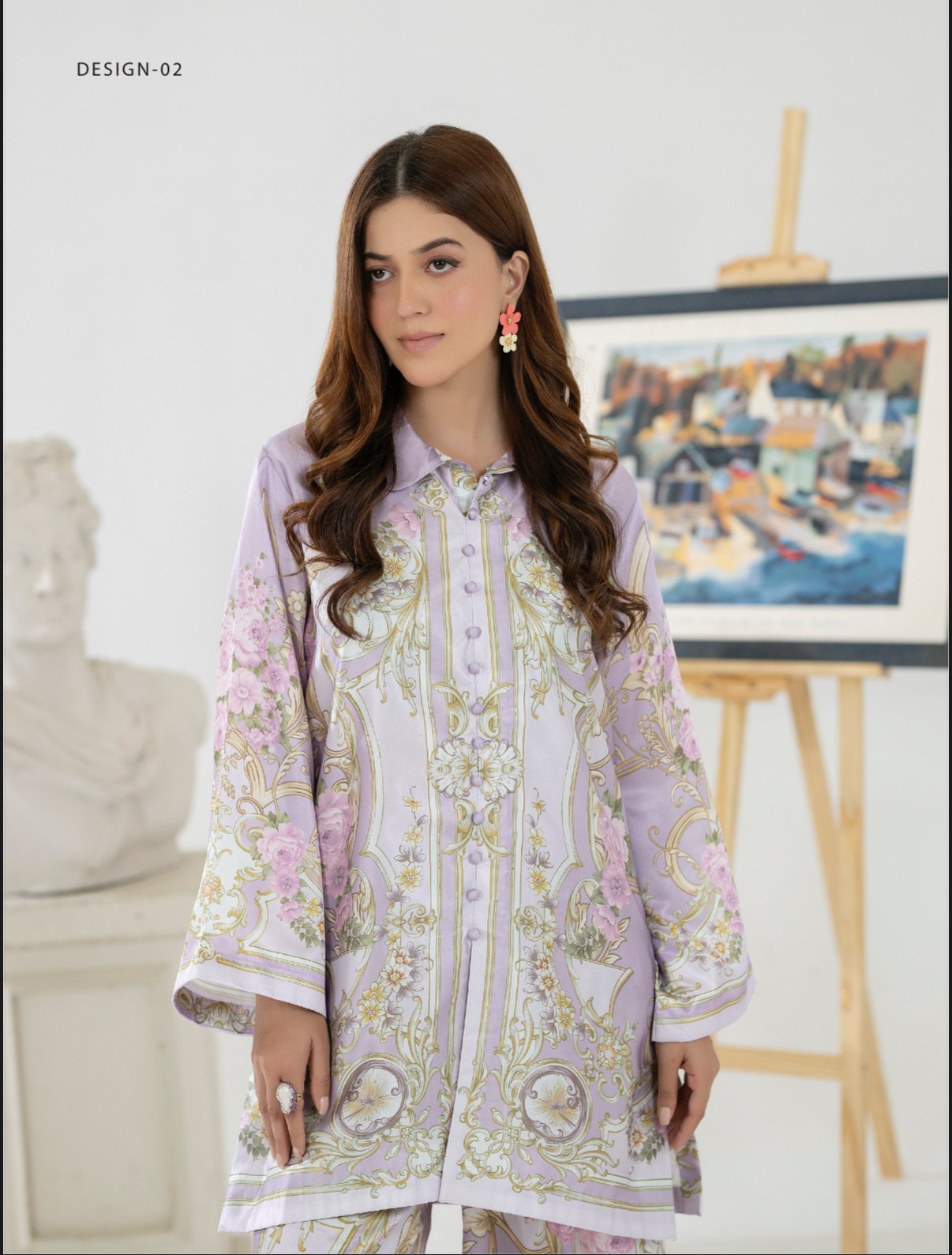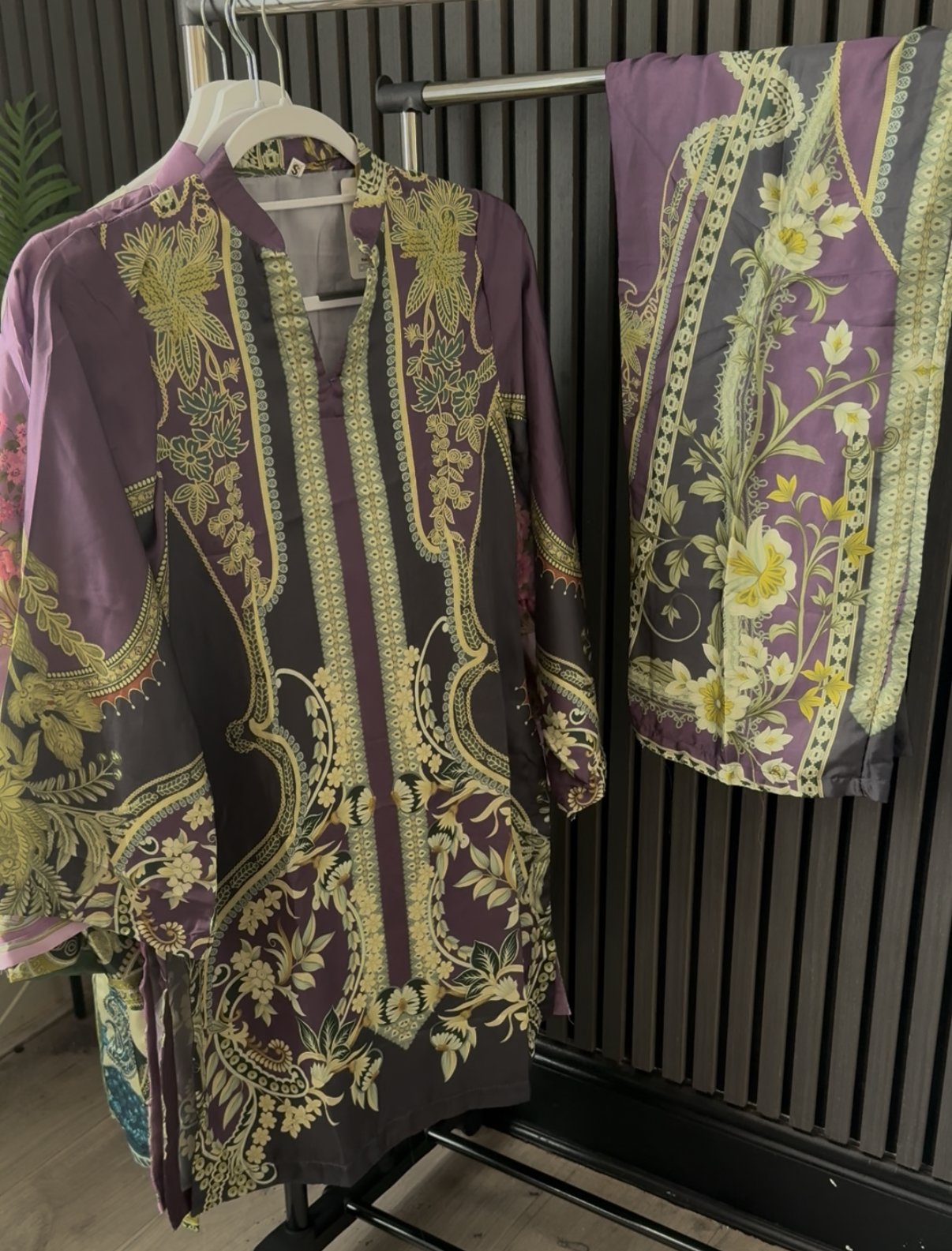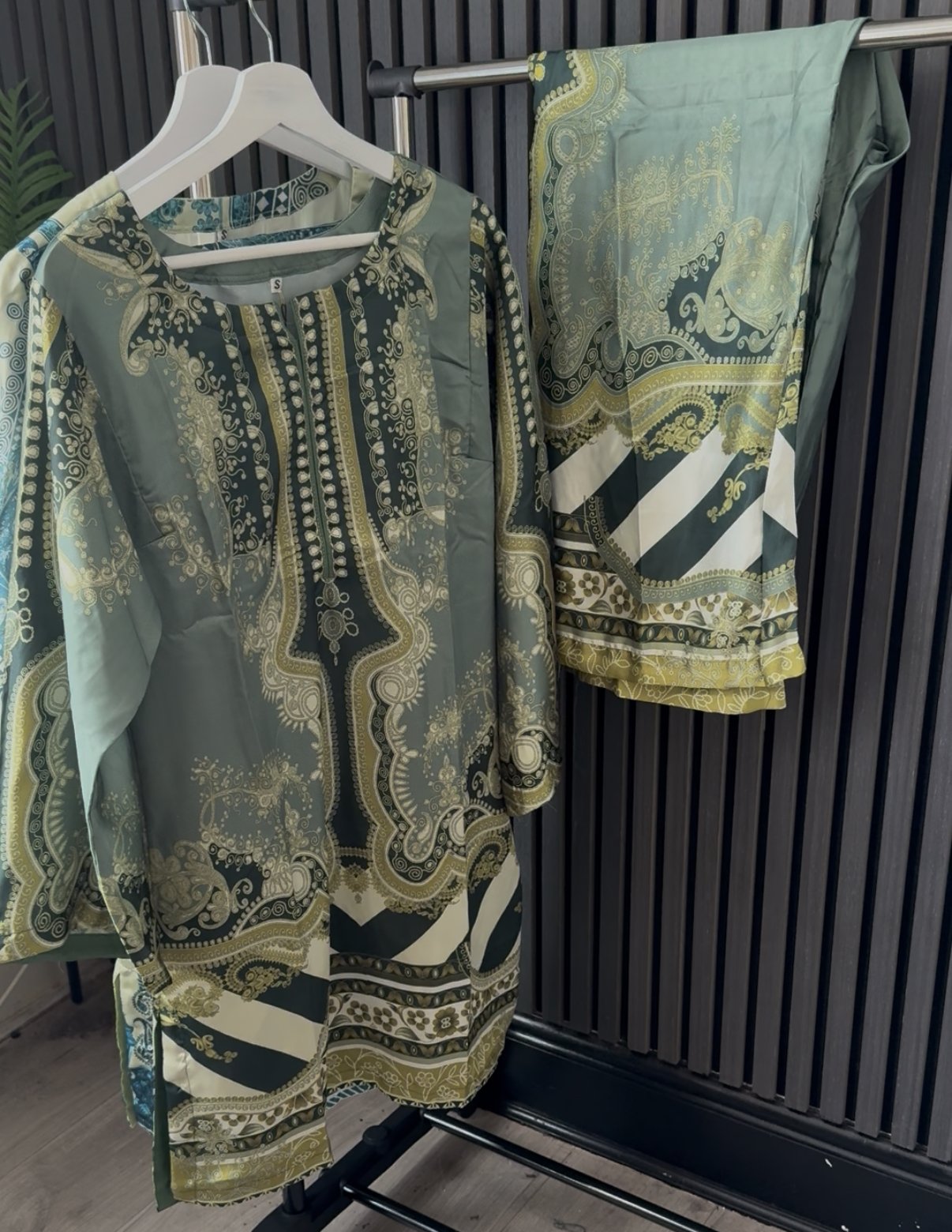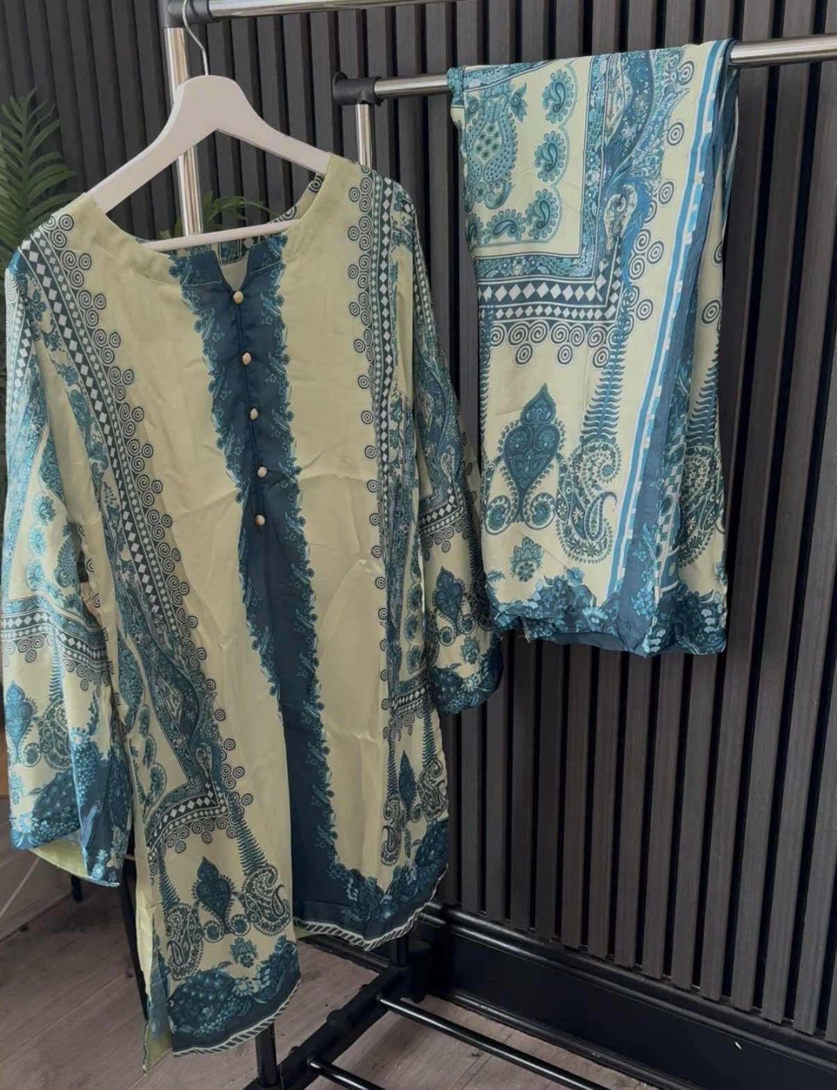 Paired with matching straight-cut trousers, the set creates a cohesive and polished look—perfect for daytime gatherings, casual outings, or semi-formal occasions. The flowy silhouette ensures ease of movement while maintaining a graceful drape.